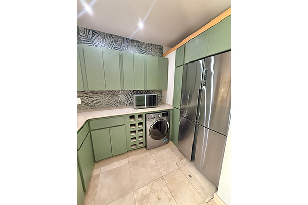 As you enter, you’re greeted by a stunning, fully equipped modern kitchen that truly delivers a jaw-dropping first impression. Sleek finishes, high-end appliances, and beautifully curated details set the tone for the rest of the villa. The space flows seamlessly into the stylish living area, fully air-conditioned for comfort and complete with comfortable seating and a television — the perfect place to unwind after a day exploring Antigua.