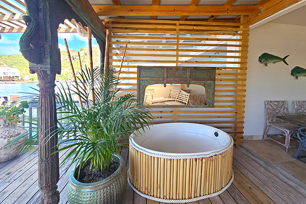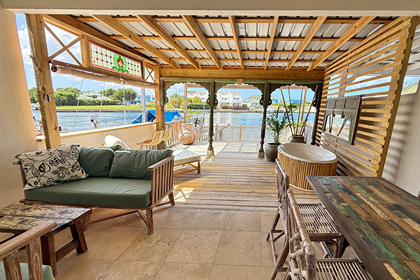 Step outside onto the extended covered patio, designed for effortless Caribbean living. Here you’ll find a beautifully furnished lounging area, a luxurious soaking tub for evening relaxation, and beyond that, a private sun deck for those who love to bask in the sunshine. Enjoy unobstructed harbour views, cooling easterly breezes, and spectacular sunset skies right from your back patio.