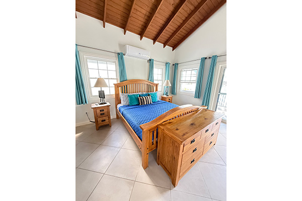 The master suite features a king-size bed and a private balcony, where you can wake up to breathtaking views of the harbor.