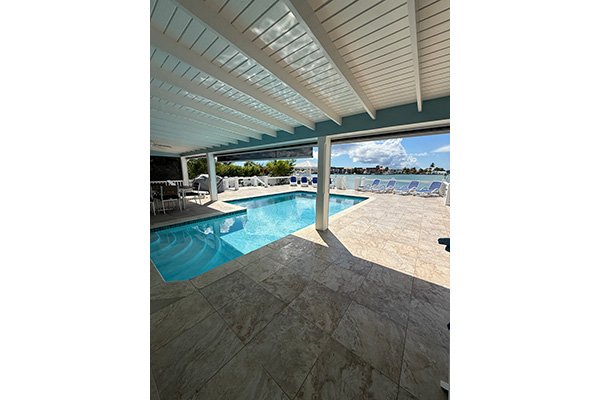 Step outside to the expansive pool deck, where you’ll find a partially covered pool, perfect for cooling off in the shade or basking in the sun.